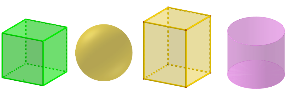 Объёмные фигуры - куб, шар, прямоугольный параллелепипед, цилиндр.