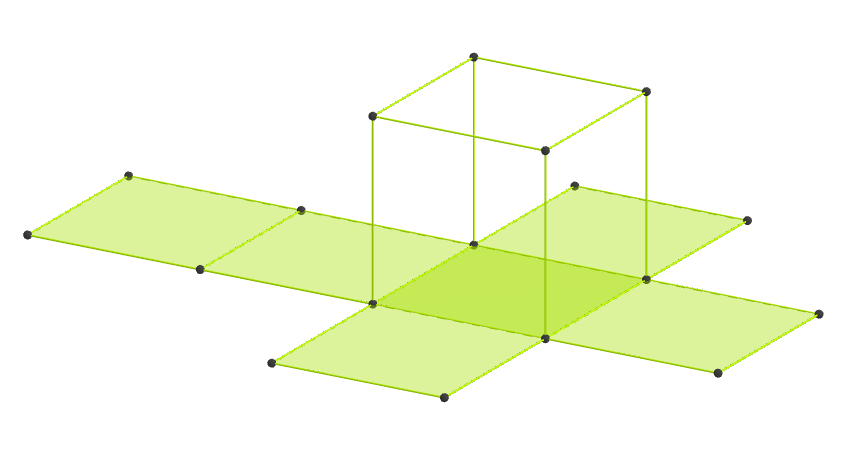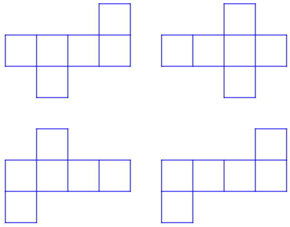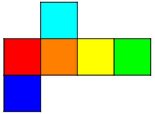 Мысленно сверните куб из развёртки и определите, какая грань является верхней, если нижняя грань голубая?
