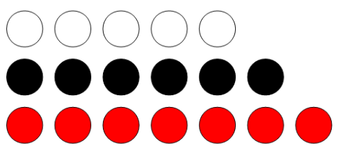 В ящике $\displaystyle 5$ белых шаров, $\displaystyle 6$ чёрных и $\displaystyle 7$ красных. На ощупь шары неотличимы друг от друга. Шары вынимают из ящика в темноте. Какое наименьшее число шаров нужно взять, чтобы среди них обязательно оказалось $\displaystyle 3$ шара разного цвета?