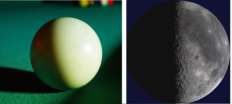 Точно так же мы увидим только половину мячика, если будем смотреть на мячик сбоку, как на фотографии.