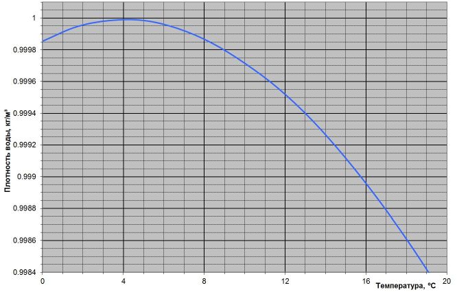 Зависимость плотности воды от температуры