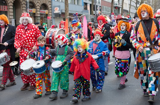 В феврале во многих европейских странах, в том числе в Германии, Австрии, Швейцарии и Италии, празднуют карнавал. В карнавал дети и взрослые наряжаются в красочные костюмы, по улицам городов проходят шествия с песнями и танцами. В городах во время шествия на многих улицах перекрывают движение машин.