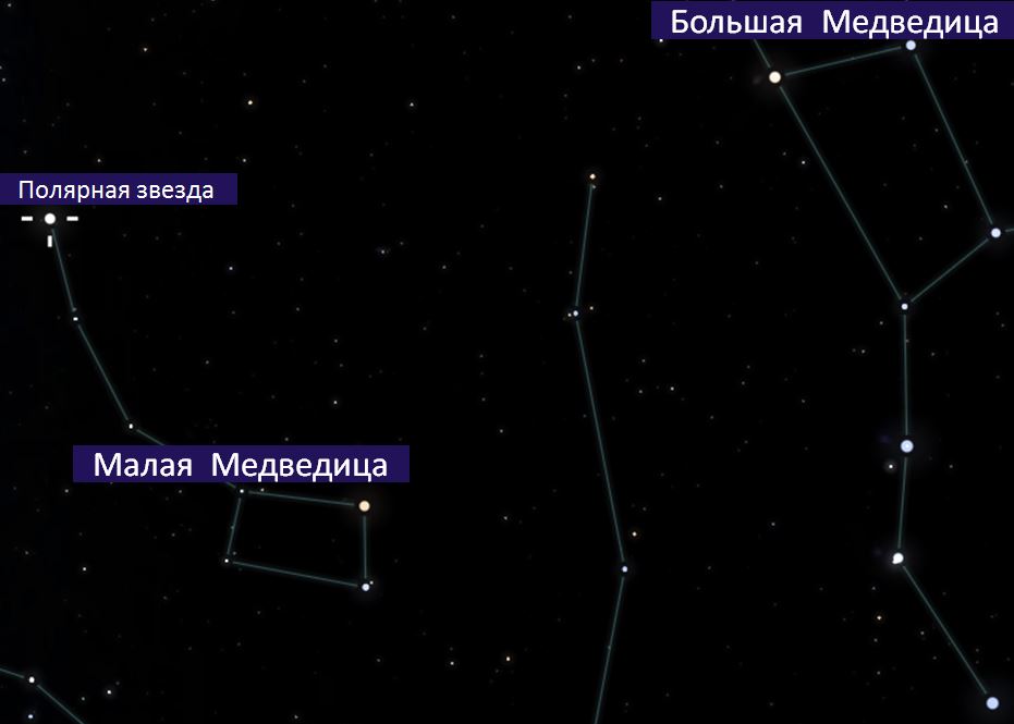На рисунках показаны созвездия, в котрые входят Полярная звезда и наиболее яркие звёзды, которые можно увидеть на небе в северном полушарии.
