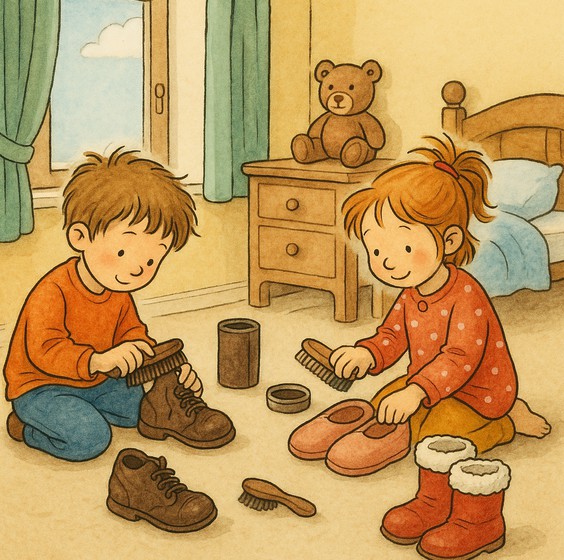 Вечером 5 декабря дети выставляют свою начищенную обувь за порог или на окно.
