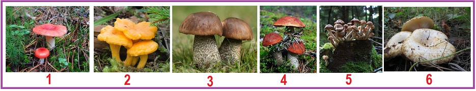 Прикрытые золотыми, красными и лиловыми листьями прячутся в сухой траве подосиновики, подберезовики, лисички, сыроежки и грузди. Люди говорят: «Грибок в кузовок — зимой будет пирожок».