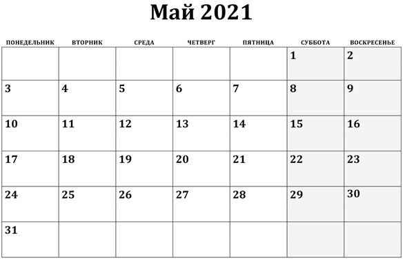 Российская императрица Екатерина Великая родилась 2 мая. Запишите, какой это день недели в 2021 году.