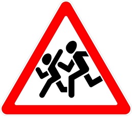 Дети внутри треугольника нарисованы как два бегущих человечка. Этот знак устанавливают рядом со школами специально для водителей, чтобы они были особо внимательны.