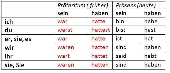 Präteritum глаголов sein и haben