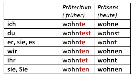 Präteritum образуется при помощи окончаний -te, -test, -te, -ten, -tet, -ten.