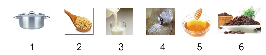 Что нужно, чтобы сварить вкусную кашу? Выбери правильные подписи к картинкам.