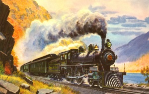 Alex can reach Adair's house by transcontinental railroad and uncle tells him some facts about the history of this railroad.
